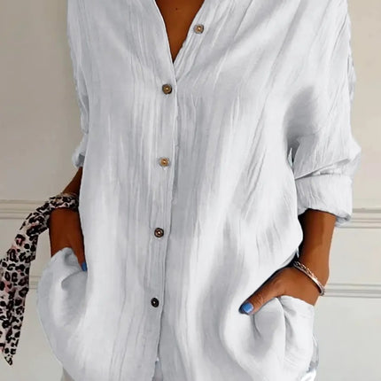Popular Spring And Summer New Women's Loose Open Button Shirt Solid Color Top
