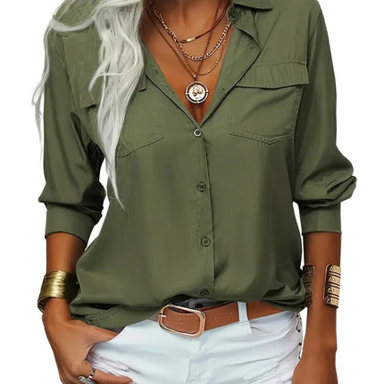 Women's Elegant Solid Chiffon Blouse Spring Summer Casual Long Sleeve V Neck Loose Shirt Office Lady Tunics Tops